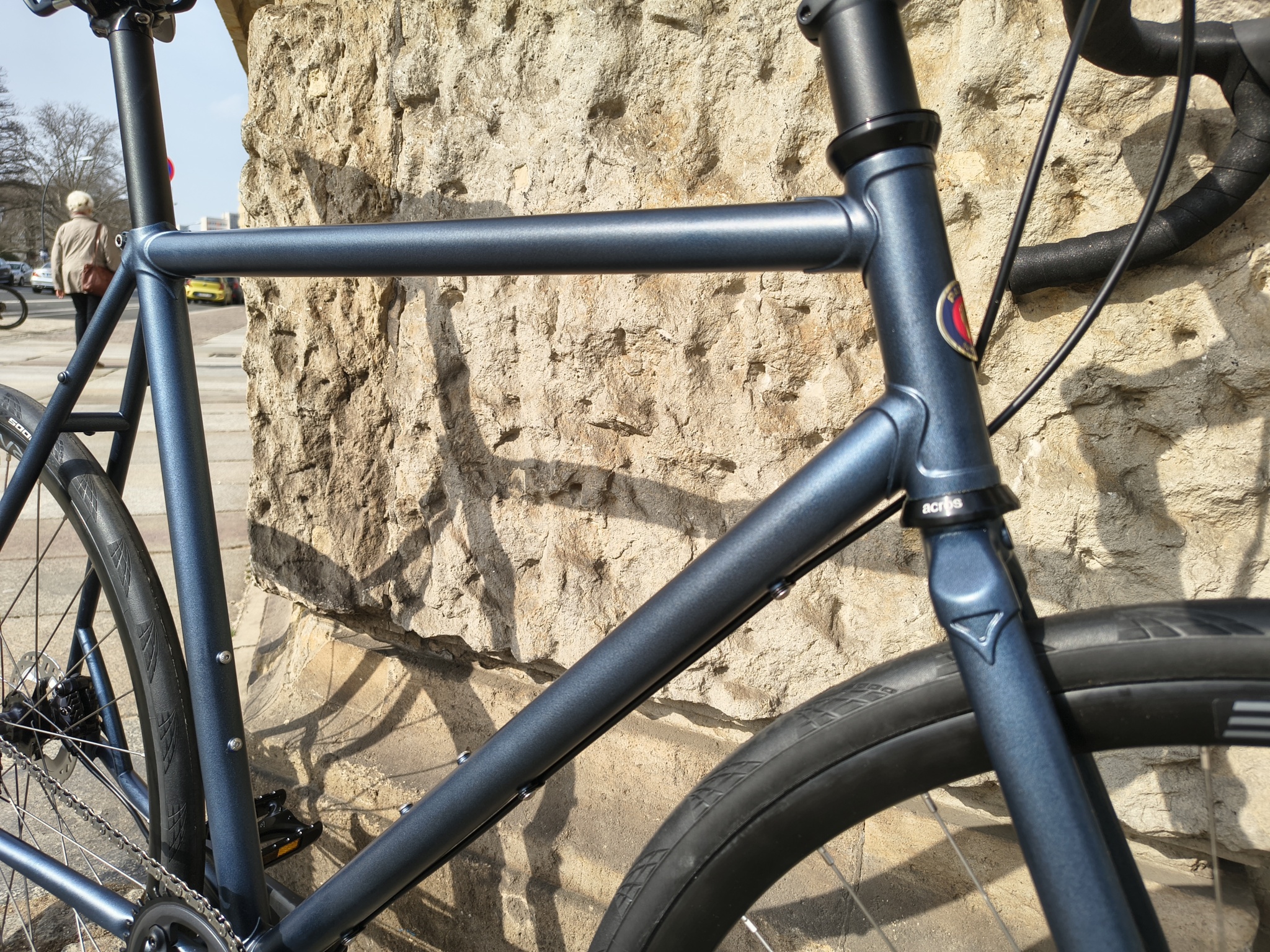 Das Patria Eos überzeugt als Endurance Rennrad mit einer Geometrie für eine moderatere Sitzhaltung als bei einem reinrassiges Rennrad. Aufgebaut ist der gemuffte Stahlrahmen aus dem leichten Columbus Zona Rohrsatz. Vervollständigt mit der Shimano GRX Di2 1 x 12, die ohne Verkabelung auskommt und den 32mm breiten Continental Grandprix 5000 tubeless ergibt es ein klassisches Rennrad mit aktueller Ausstattung.