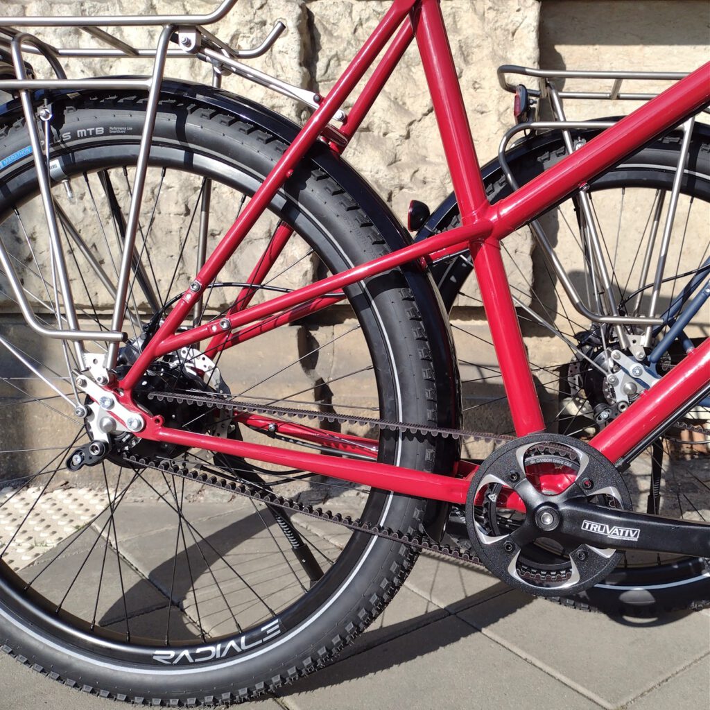 In der Diamant-Rahmenformvariante ist das Patria Kosmos bis 180kg Systemgewicht belastbar. Aufgebaut auf dem Poppe+Potthoff XL Rohrsatz und 27,5″ Laufrädern ist es die Basis für ein sehr zuverlässiges Reiserad. In der Bilderserie vorgestellt mit der SON Lichtanlage und dem Ladelux Frontscheinwerfer mit Fernlicht und Ladefunktion für externe Geräte wie Handy oder Navigation.